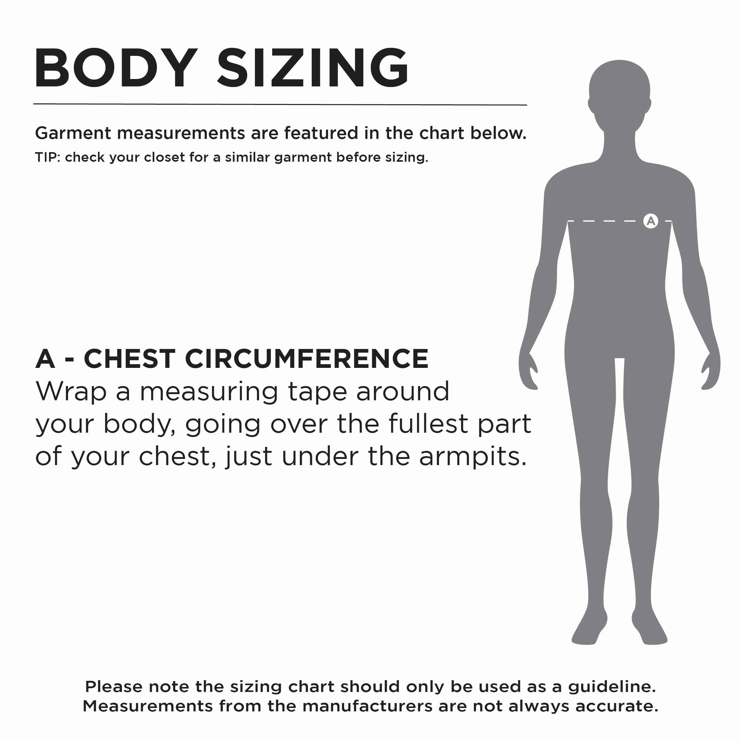 | Chest | 32.5-33.5 | 33.5-36 | 36 - 38 | 38 - 41 | 41 - 44 | 44 - 47 |